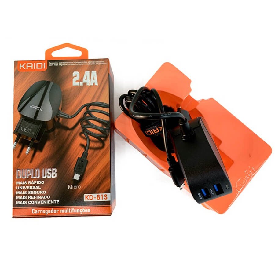 Este carregador rápido lhe oferecerá a praticidade de carregar seu celular e mais dois aparelhos usb.